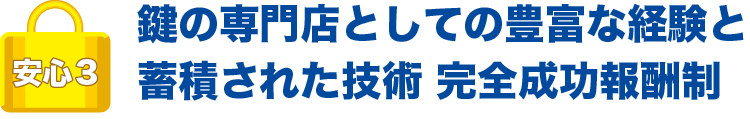 経験豊富なスタッフが鍵のトラブルを速やかに解決します。トラブルが解決しない場合、料金はいただきません。 自社対応ならではの安心とメリット!